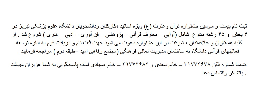 سامانه کارگاههای پژوهشی و رویدادهای دانشگاه علوم پزشکی تبریز
