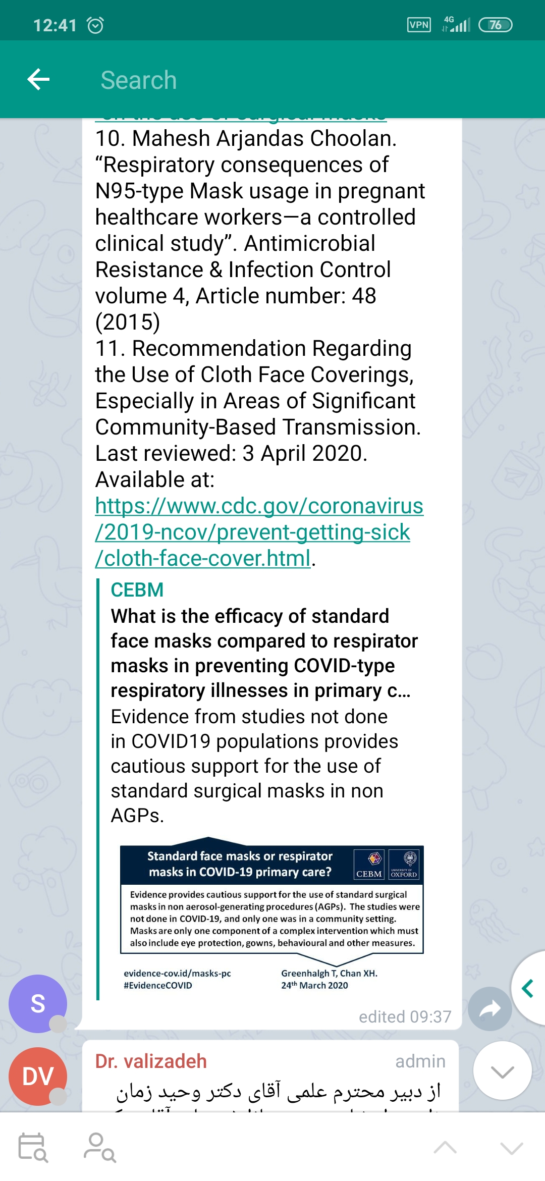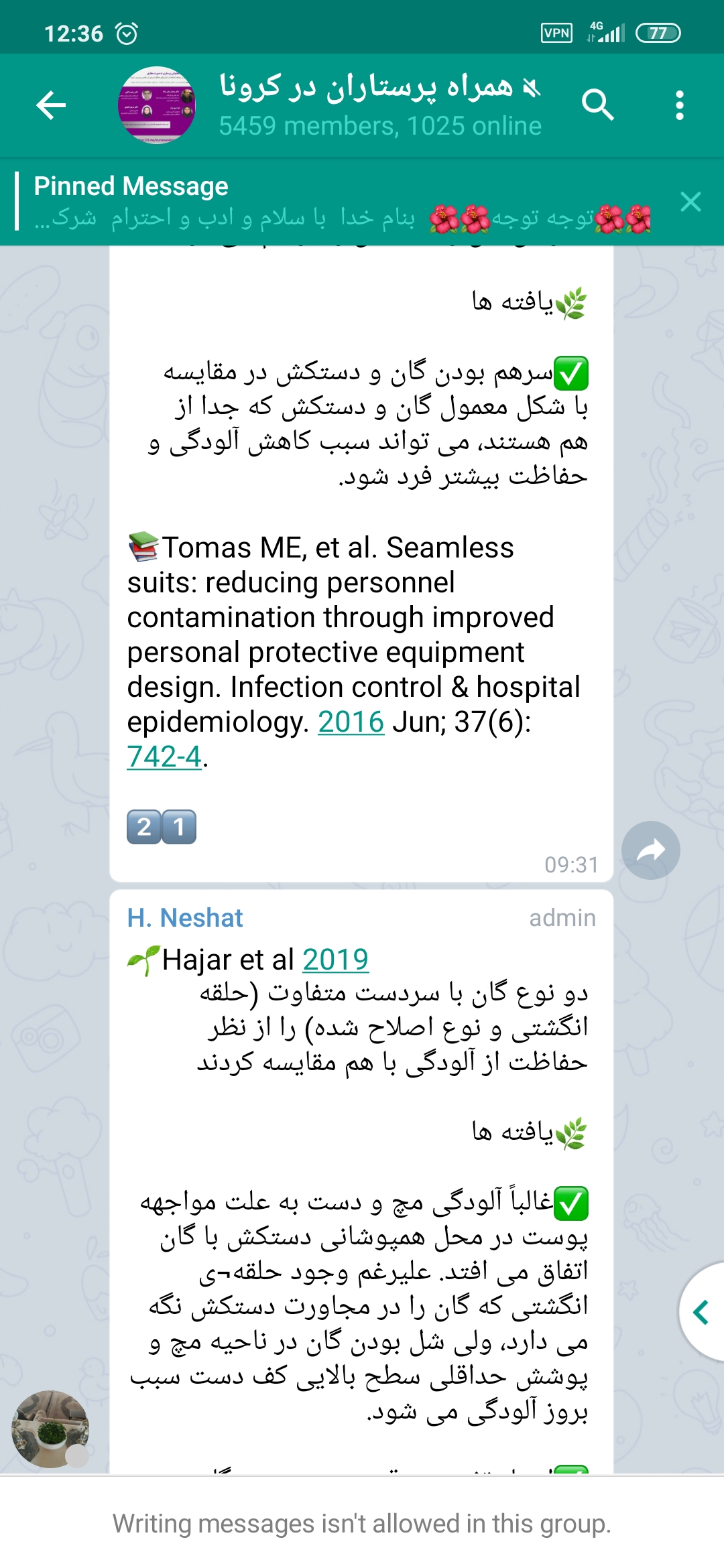 به گزارش روابط عمومی دانشکده علوم پزشکی تبریز پانل چهارم و پنجم سری دوم ژورنال کلاب مجازی کشوری با موضوع «کارآمدترین ترکیب وسایل حفاظت فردی برای پرسنل درمانی در مواجهه با ویروس کرونا» و «راهبردهای به حداقل رساندن استفاده از وسایل حفاظت فردی با هدف هزینه» پنج شنبه و جمعه 8 و 9 خرداد برگزار شد. مطالب و محتوای آموزشی در گروه مربوطه بارگذاری شده و مقالات و شواهد معتبر منتشر شده مرور و بررسی شده و پرسش و پاسخ های مربوطه نیز انجام یافت. برخی از مطالب بارگذاری شده در پانل های فوق به شرح زیر می باشد.