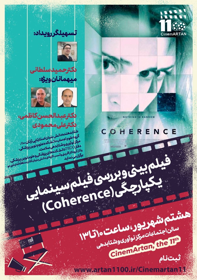 با عنایت به برگزاری یازدهمین نشست فیلم بینی سینمآرتان، با تسهیلگیری دکتر حمید سلطانی و بررسی فیلم یکپارچگی خواهشمند است مراتب را به سمع و نظر تمامی ذینفعان برسانید. (پوستر به پیوست)