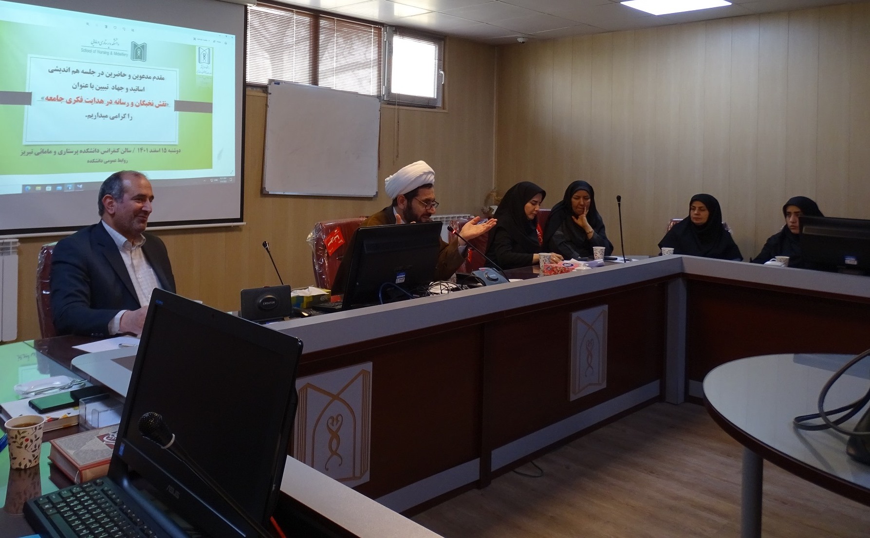 در ادامه حجت الاسلام خیری، مسئول نهاد رهبری دانشگاه علوم پزشکی تبریز، ضمن تبریک اعیاد شعبانیه و با اشاره به نقش پیامبران در تبیین گفت: از جهت عقبه‌ دینی و اعتقادی هم اصل دعوتِ صدر اسلام بر پایه‌ تبیین استوار بود و درتبیین، «بیان» مهم‌ترین وظیفه پیامبران است. وی همچنین بیان داشت نقش اساتید در رفتار و عملکرد دانشجویان و جامعه بسیار تاثیرگذار و حیاتی است و از آنجا که نقش رسانه ها در هدایت فکری جامعه نقشی پر اهمیت است، اساتید می توانند با استفاده از عملکردها و راهکارهای موثر و سازنده خود، تفکر دانشجویان را به سمت واقعیتهای انقلاب اسلامی سوق دهند. وی همچنین در ادامه با اشاره به شرایط فعلی جامعه گفت: شرایط کنونی جامعه باعث شده ضرورت «جهاد تبیین» اهمیتی دوچندان یافته و بهمین دلیل رهبر انقلاب روی این عنوان تاکید اساسی دارند.