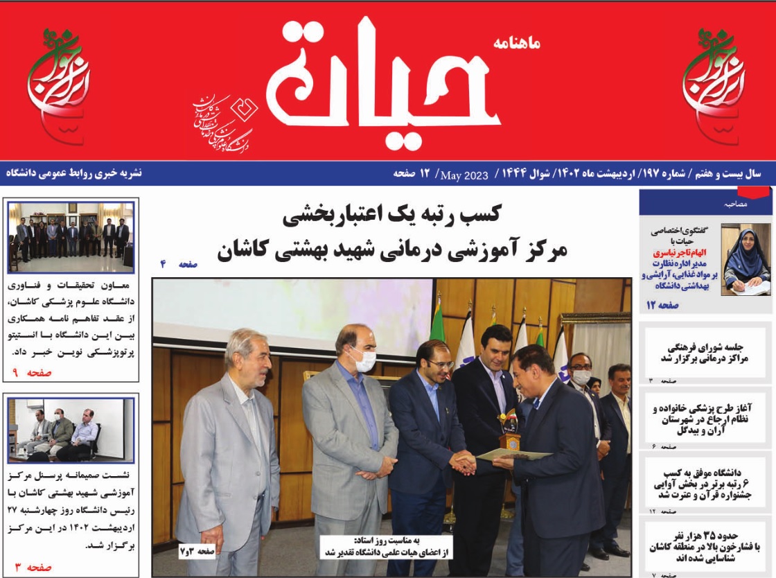 صد و نود و هفتمین شماره نشریه «حیات» دانشگاه علوم پزشکی کاشان انتشار یافت. جهت دریافت فایل این شماره از نشریه، بر روی تصویر کلیک نمائید.