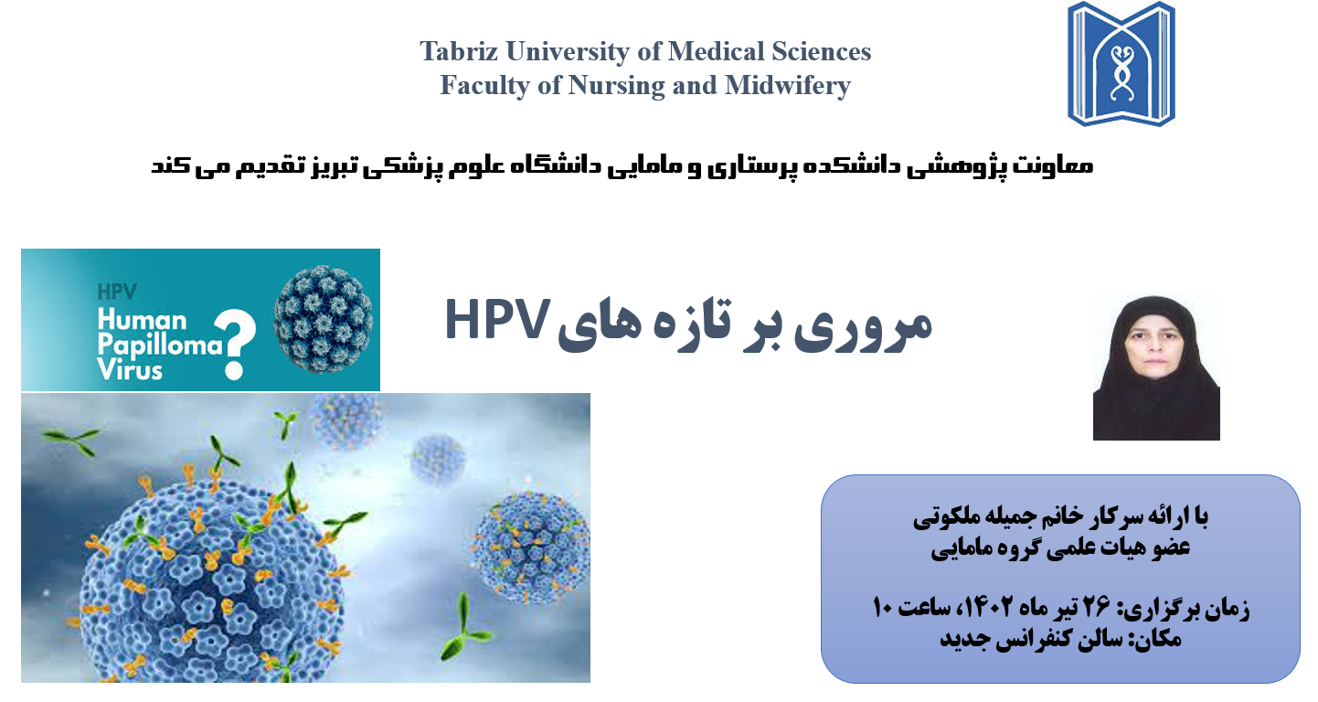 بدینوسیله به استحضار اساتید گرامی میرساند، ارائه برنامه ژورنال کلاب توسط سرکار خانم جمیله ملکوتی عضو محترم هیات علمی گروه مامایی، طی جلسه گروه آموزشی مامایی تحت عنوان «مروری بر تازه های HPV» روز دوشنبه مورخ 1402/4/26 راس ساعت 10 در سالن سمینار طبقه فوقانی حوزه ریاست دانشکده برگزار خواهدشد. در صورت صلاحدید و علاقه مندی حضور اساتید محترم سایر گروههای آموزشی دانشکده در این جلسه بلامانع است.