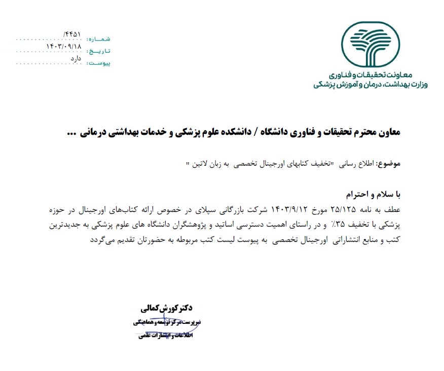 به اطلاع علاقمندان میرساند شرکت بازرگانی سپلای ارائه کتابهای اورجینال تخصصی در حوزه پزشکی را با تخفیف 35 درصدی اعمال کرده است.