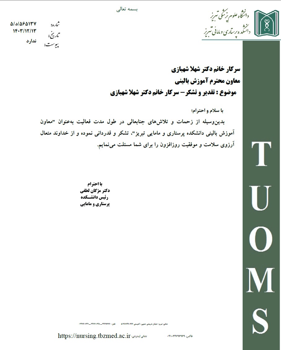 به گزارش روابط عمومی دانشکده، خانم دکتر مژگان لطفی؛ رئیس دانشکده با ارسال نامه ای از زحمات سرکار خانم دکتر شهلا شهبازی در طول مدت فعالیت ایشان بعنوان معاون آموزش بالینی دانشکده تقدیر و تشکر کرد. در متن نامه آمده است: