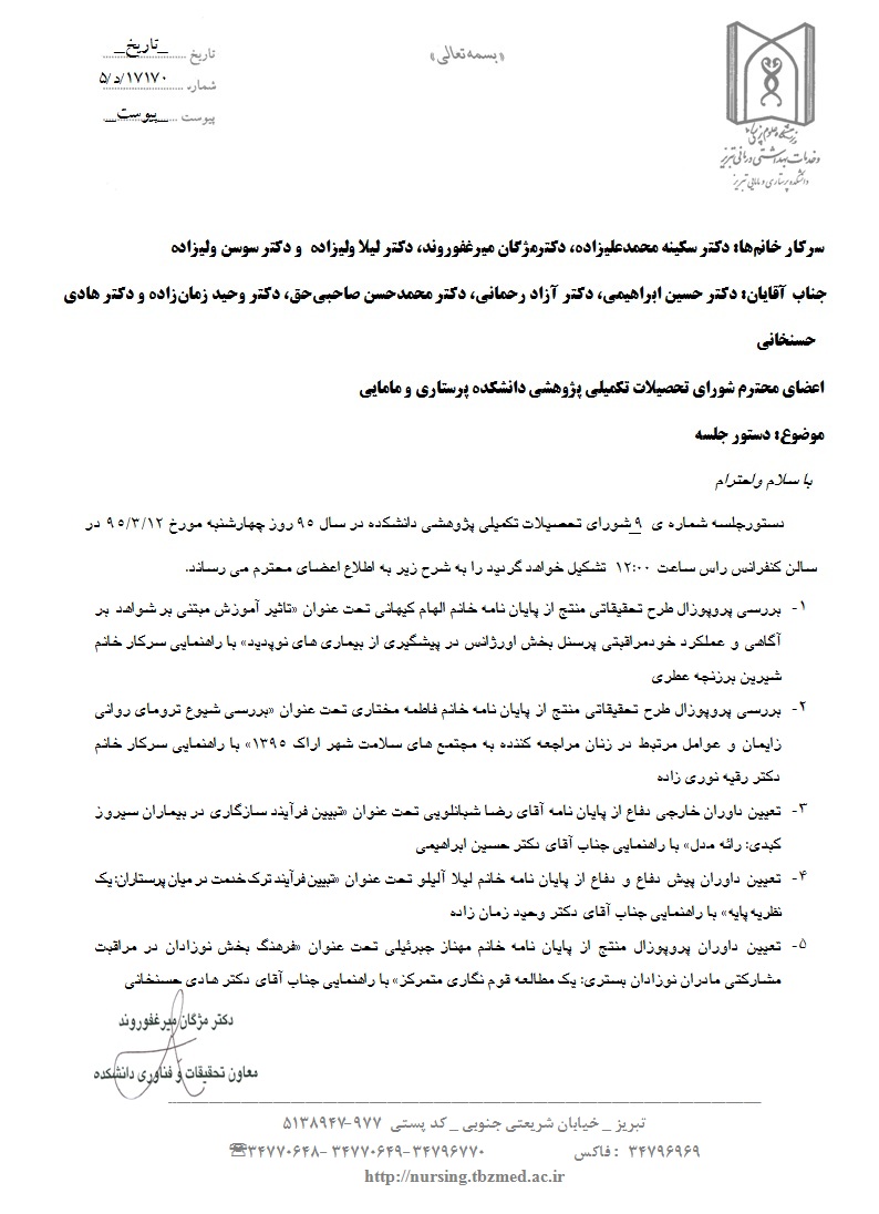 اعضاء هيئت علمي دارای شرايط احراز استاد راهنمایی پایاننامه