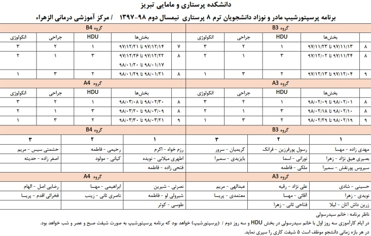 برنامه پرسپتورسیپ مادر و نوزاد ترم 8 کارشناسی پرستاری (نیمسال دوم 98-97)